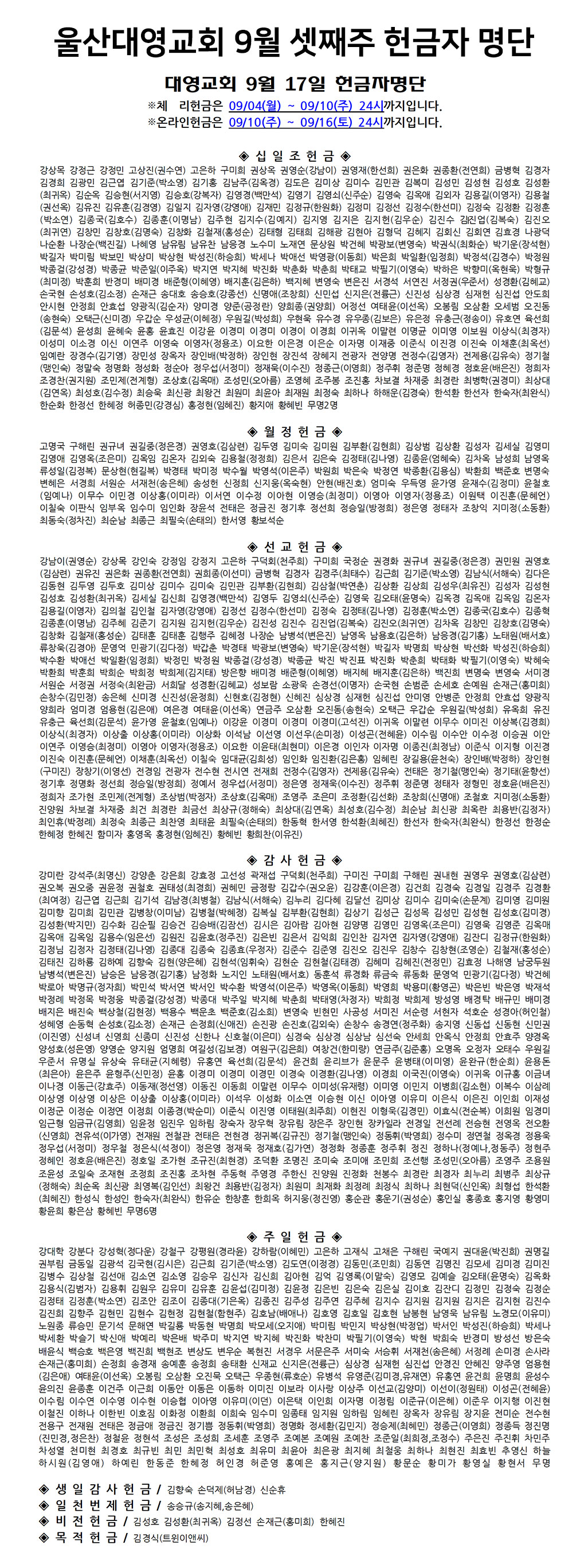 2023년 9월 셋째주 헌금자명단