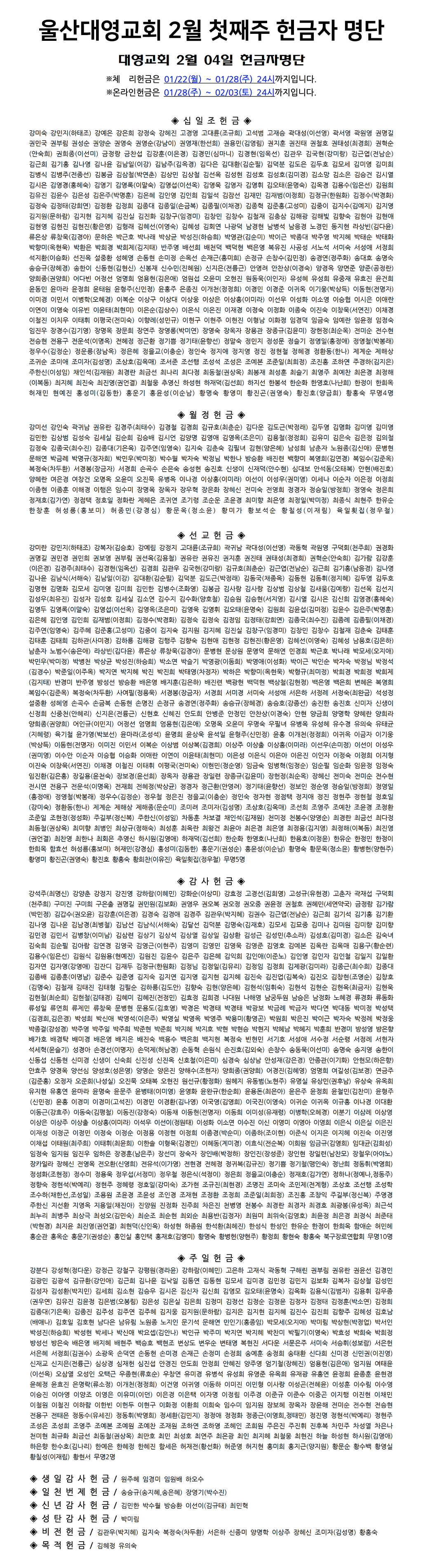 2024년 2월 첫째주 헌금자명단