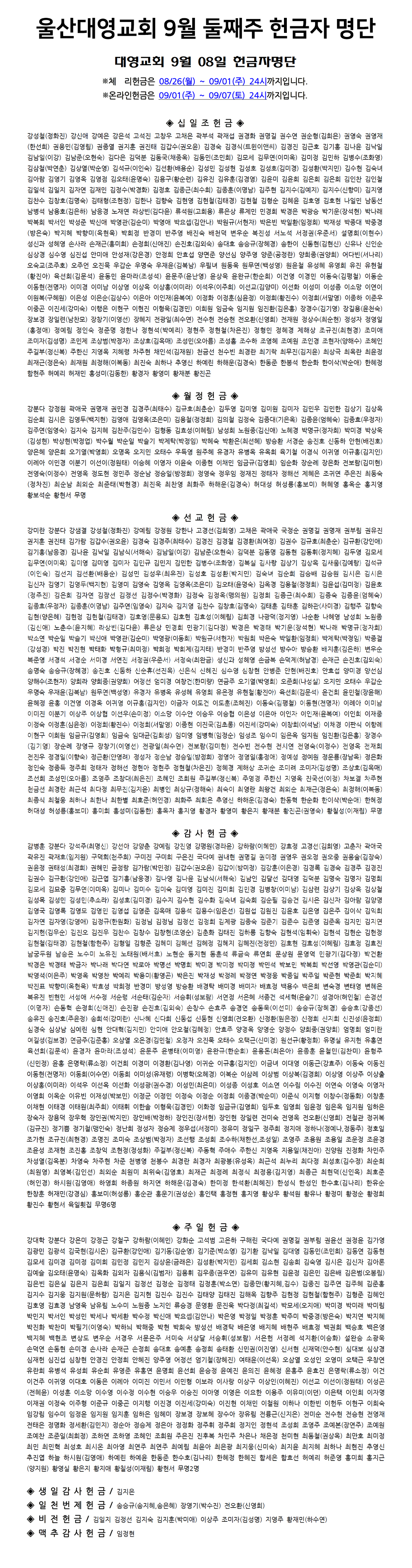 2024년 9월 둘째주 헌금자명단